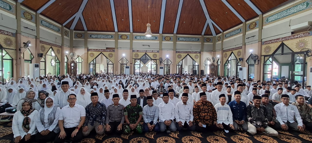 KARAWANG-Bertemakan ‘Haji Ramah Lansia dan Disabilitas’, sebanyak 2000 lebih calon jemaah haji (CJH) mengikuti pembukaan bimbingan manasik (bimsik) Haji Tahun 1446 H / 2025 M tingkat kabupaten tahap 1 Kantor Kementerian Agama Kabupaten Karawang di Masjid Aljihad Komplek Islamic Center, Sabtu (13/4/2025).