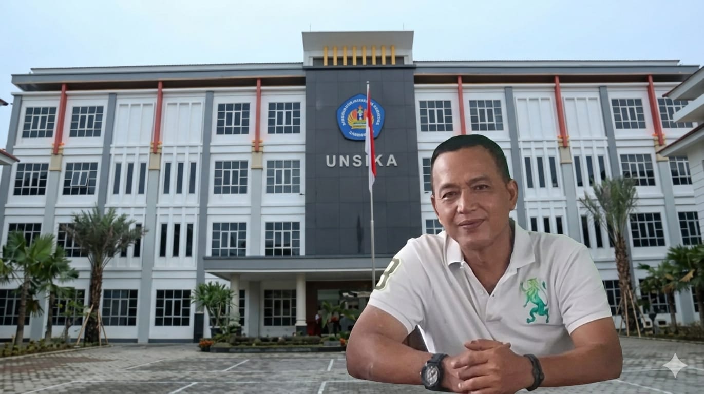 Kuasa hukum korban, H. Martin Poerwadinata dengan background Kampus UNSIKA.