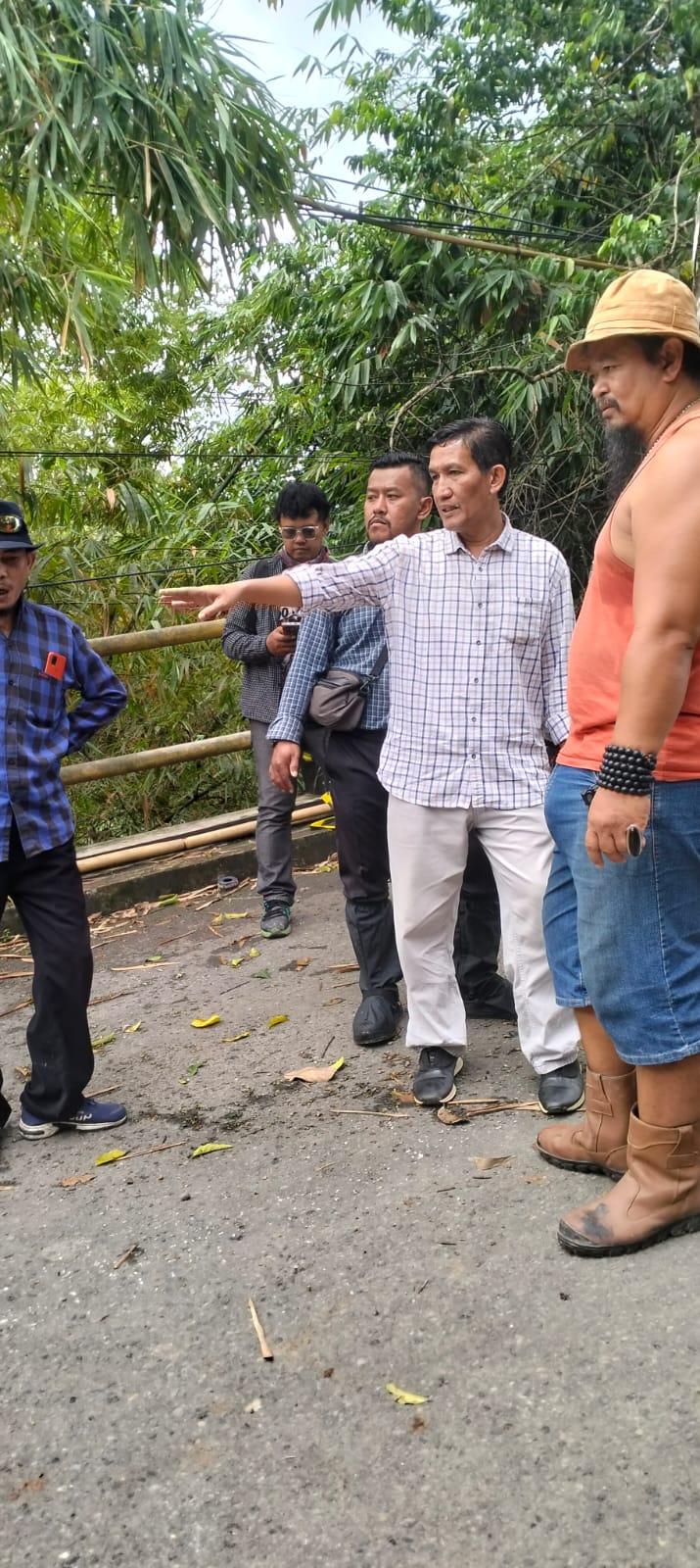 Anggota Komisi II DPRD Provinsi Jawa Barat, H. Budiwanto, S.Si., M.M., (baju putih) saat meninjau jembatan Cicangor yang amblas.