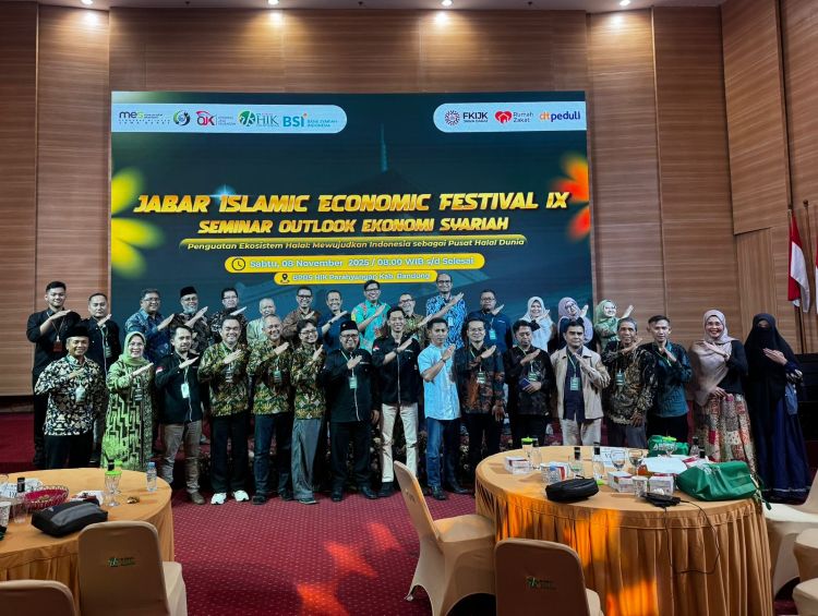 BANDUNG-Sejumlah pengurus Masyarakat Ekonomi Syariah (MES) se-Jawa Barat menggelar konsolidasi penguatan ekosistem halal dan pusata halal dunia dengan melalui kegiatan Jabar Islamic Economic Festival (JIEF) IX di Bandung, Sabtu (8/11/2025).