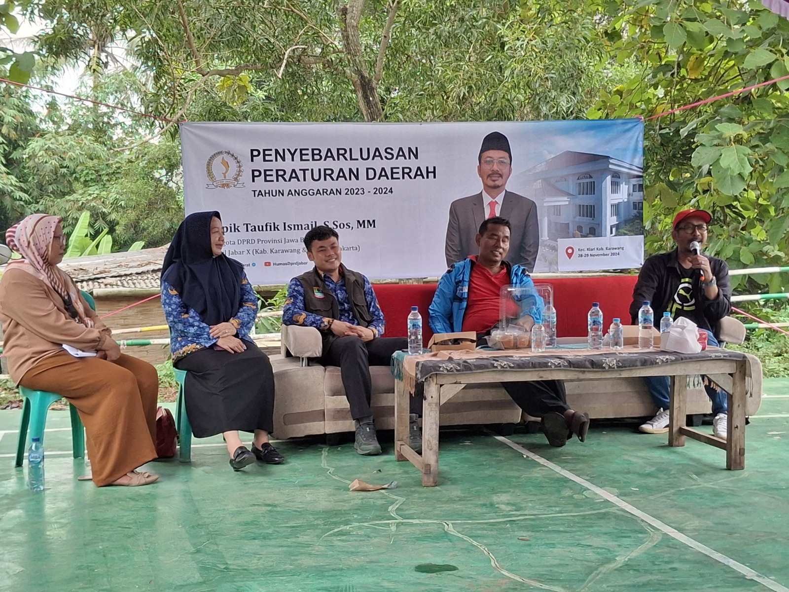 Sementara itu di tempat di Dusun Sukagalih Desa Karanganyar Klari Kang Pipik menggelar kegiatan Penyebarluasan Perda No. 2 Tahun 2023 Tentang Pemberdayaan dan Pelindungan Perempuan.