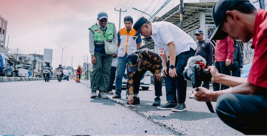 Untuk memastikan kualitas perbaikan infrastruktur berjalan optimal, Bupati Karawang Aep Syaepuloh turun langsung ke lapangan meninjau proses perbaikan jalan yang tengah berlangsung di Jalan Surotokunto.