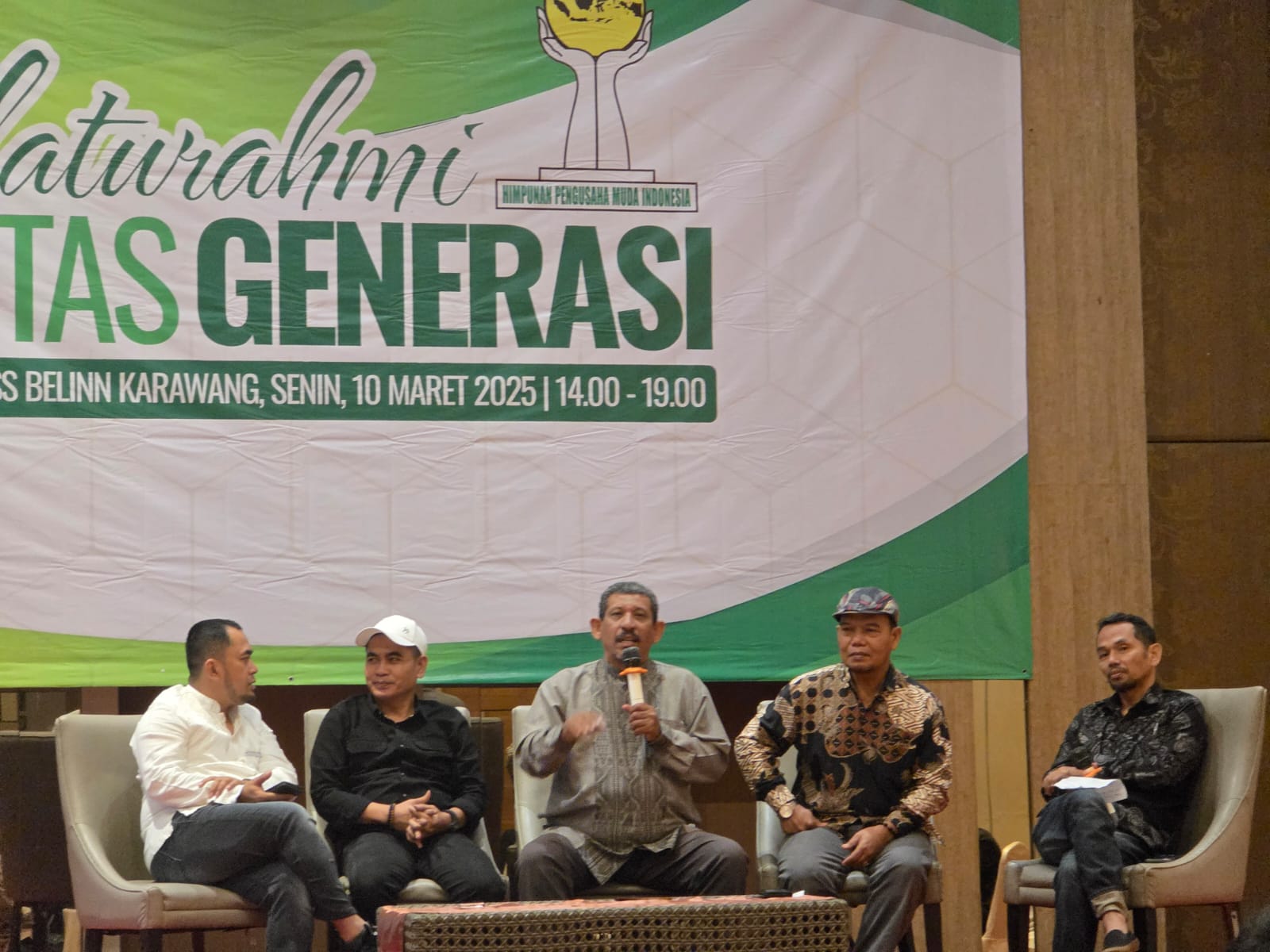 KARAWANG-Purna pengurus Himpunan Pengusaha Muda Indonesia (HIPMI) beserta dewan pembina Pengurus BPC HIPMI Karawang dan mantan – mantan ketua umum BPC HIPMI Karawang menggelar agenda Silaturahmi Lintas Generasi di Hotel Swiss Bell In Karawang.