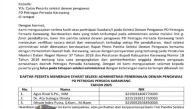 KARAWANG-Pembukaan pendaftaran calon Dewan Pengawas (Dewas) PD Petrogas Persada Karawang tahun 2025 diikuti oleh 17 […]